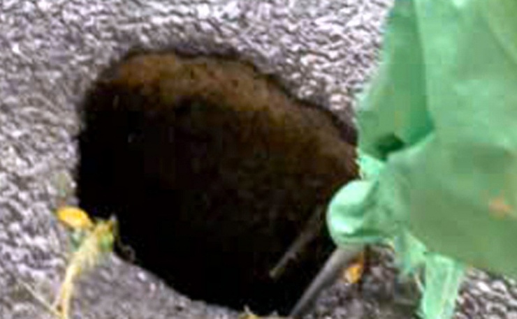 Hố sụt sâu gần 1m giữa lòng đường Hà Nội
