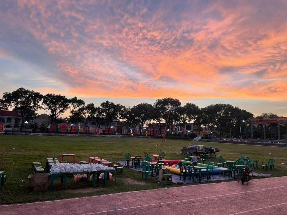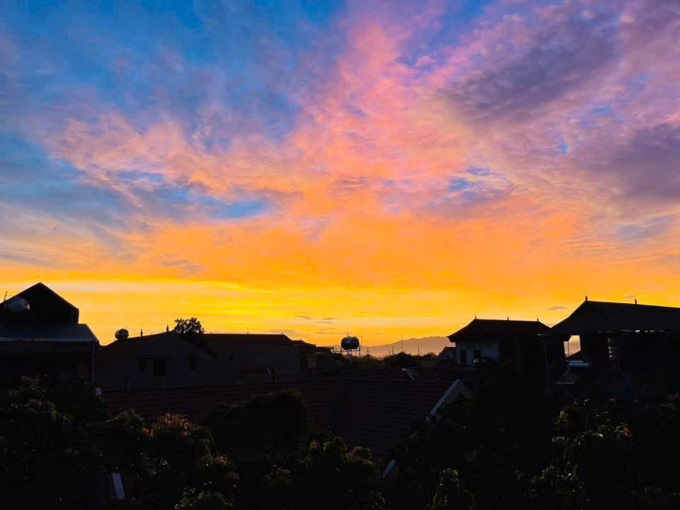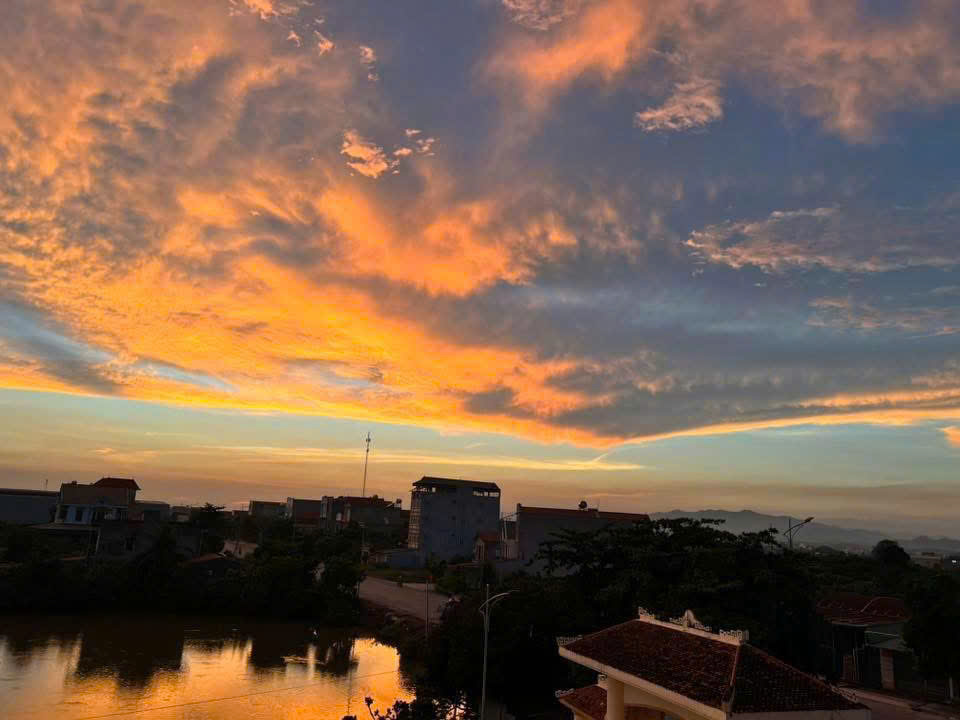 Những đám mây mang màu sắc sặc sỡ đã buông xuống trong dáng chiều tà, ngày hôm nay 4-10-2025 đã khiến nhiều người dân ở đây thích thú. Nhiều người dân đã chụp lại khoảnh khắc những đám mây sặc sỡ này, đăng lên mạng xã hội.