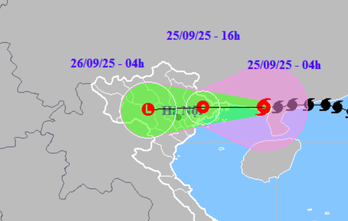 Dự báo tới 16 giờ chiều nay 25-9, tâm bão Ragasa ở khoảng 21,5 độ Vĩ Bắc; 106,9 độ Kinh Đông, trên đất liền khu vực Đông Bắc Bắc Bộ. Sức gió mạnh nhất cấp 6, giật cấp 8.