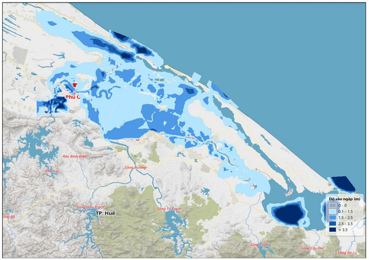 Tình hình ngập lụt sâu, diện rộng từ TP Huế đến tỉnh Quảng Ngãi sẽ duy trì trong vài ngày tới. Nguy cơ cao xảy ra lũ quét trên các sông suối và sạt lở đất trên các sườn dốc các tỉnh/thành phố từ Huế đến Quảng Ngãi. Các xã, phường có nguy cơ ngập lụt gồm: