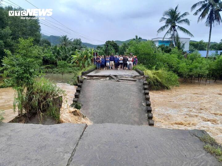 Theo đó, khoảng 5h15 cùng ngày, nhiều người dân hốt hoảng khi chứng kiến cầu Cây Sung (thuộc thôn Phước An) đổ sập.