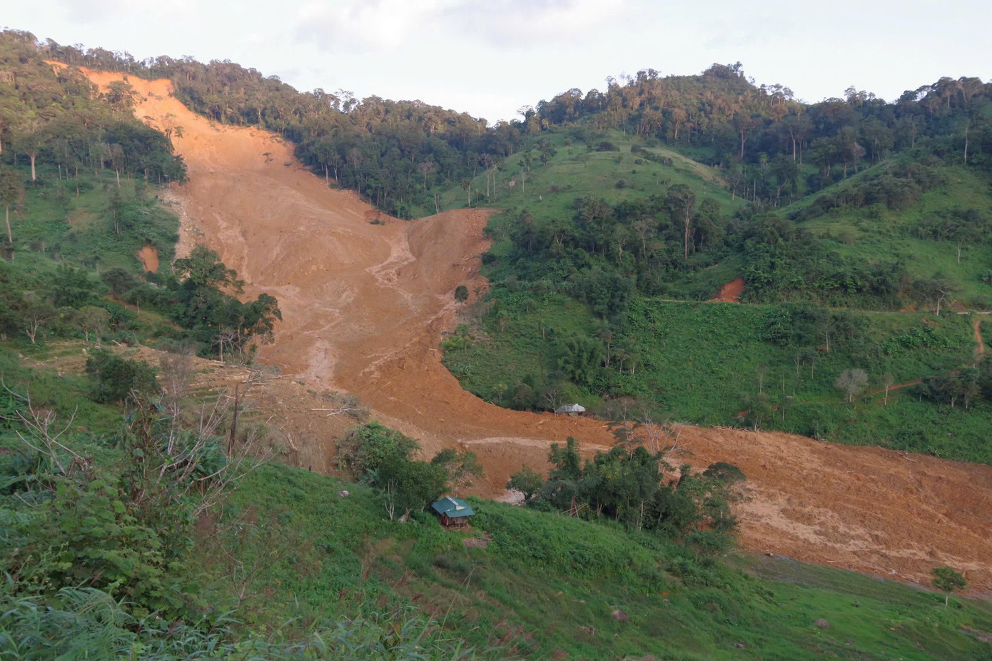 Sạt lở cũng vùi lấp hoàn toàn 5 nhà canh rẫy, gây hư hỏng 200m tuyến đường liên xã, làm thiệt hại khoảng 20ha lúa nước và hoa màu của người dân.