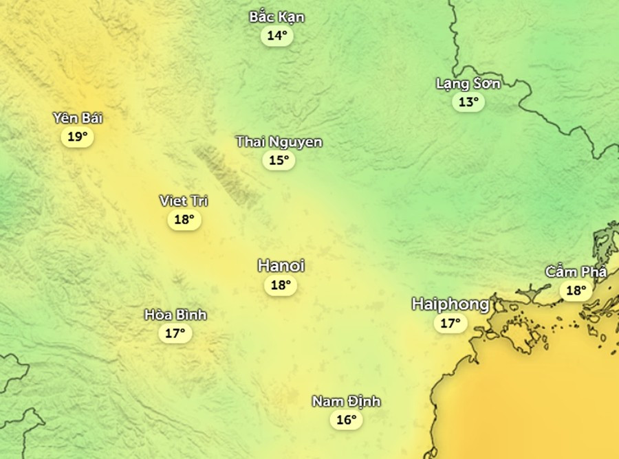 Theo các mô hình hiện tại, Hà Nội sẽ có gió mùa Đông Bắc mạnh hơn vào ngày 18/11 (thứ Ba tới) khiến nhiệt độ giảm sâu, nhiệt độ cảm nhận cả ngày chỉ ở mức 14 - 15oC, là mức rét đậm. Thậm chí, một số mô hình còn dự báo nhiệt độ cảm nhận ở Hà Nội chỉ khoảng 12oC vào sáng 18/11.
