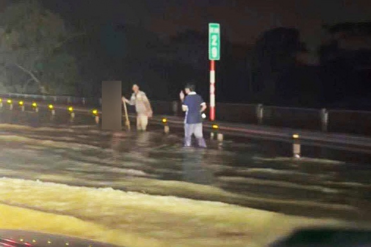 Điều không mong muốn đã xảy ra, nước lũ tràn lên cao tốc Hà Nội - Thái Nguyên
