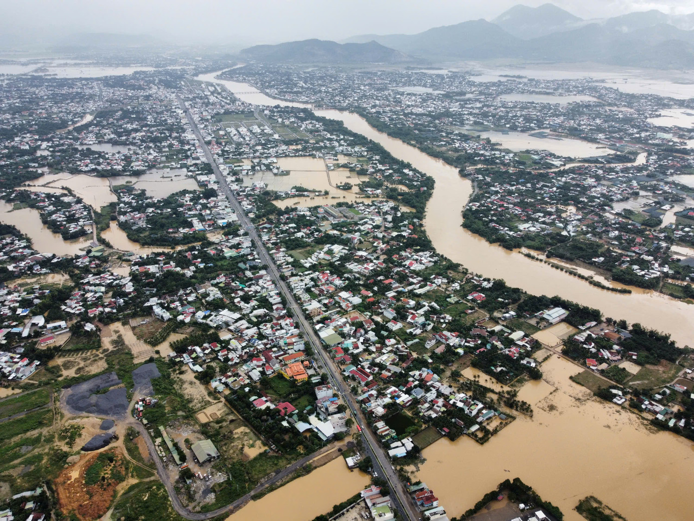 Từ trên cao, Nha Trang như một biển nước sau hai ngày mưa lớn. Trong khi đó, các hồ chứa tiếp tục xả lũ, người dân tất tả chạy lụt. Đến 16 giờ ngày 17-11, dự báo sông Cái Nha Trang, tỉnh Khánh Hòa...