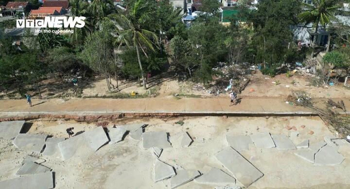 Tuyến đường bêtông chạy dọc ven biển ở xã Long Phụng, tỉnh Quảng Ngãi bị sóng lớn đánh tan nát. Những ngày gần đây, người dân xã Long Phụng bày tỏ sự lo lắng trước tình trạng sạt lở xảy ra tại tu...